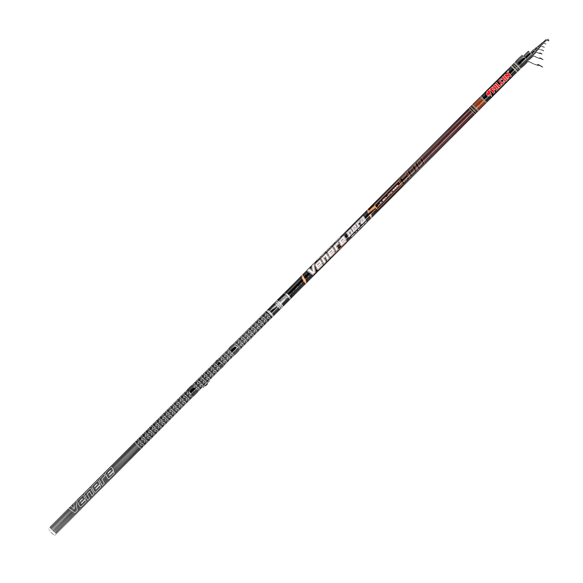 La Venere Nera es una caña boloñesa de sección larga fabricada por Falcon con carbono 46T. Su principal característica es el uso de solo cinco secciones en la versión de 6 metros y seis en la de 7 metros. Estos detalles de construcción, combinados con el carbono 46T de alta calidad, dan como resultado una caña delgada y extremadamente equilibrada, con un peso de lanzamiento declarado de 30 g, una acción rápida y una experiencia de pesca inigualable. La caña viene equipada con anillas Sea Guide.